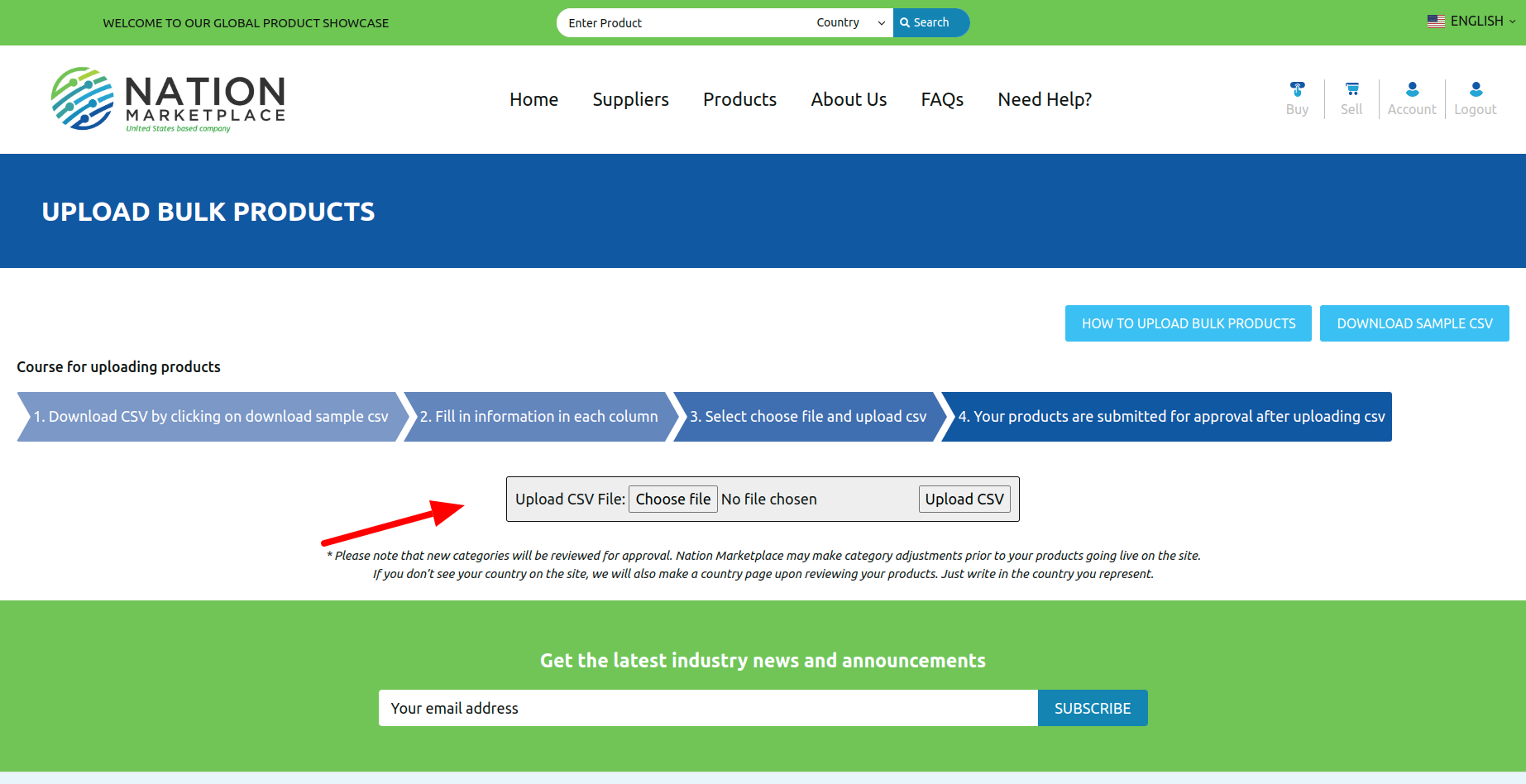 Step 1 : Download Sample CSV file https://nationmarketplace.com/media/Sample-Product.csv